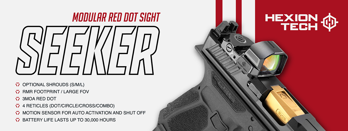 This is Hexion Tech's Seeker Red Dot Sight. Hexion Tech is an off-shoot company under the Strike Industries umbrella that focuses more on red dot technology R&D. The Seeker RDS us a compact and modular open reflex sight for pistols. What makes this optic modular are three optional shrouds that can be purchased separately. There are three sizes of shrouds available, small, medium, and large.
